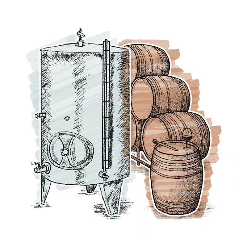 Die meisten unserer Weissweine reifen im Chromstahltank. Dieses Material ist geschmacksneutral und gibt keine Aromen an den Wein ab. Dadurch bleiben die primären Fruchtaromen besonders klar und präzise erhalten. Es entstehen geradlinige und frische Weine mit knackiger Säure.